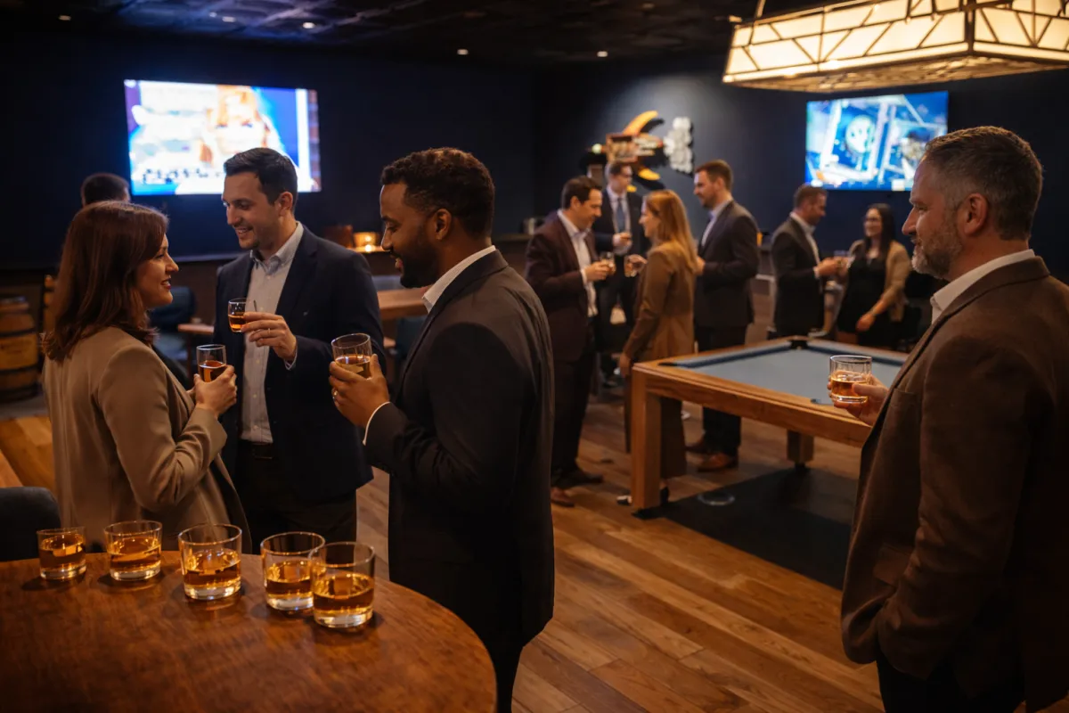 Business on the Rocks is an exclusive, ticketed business networking event combining premium spirit tastings, elevated hors d’oeuvres, and meaningful professional connections in an upscale downtown Knoxville setting.